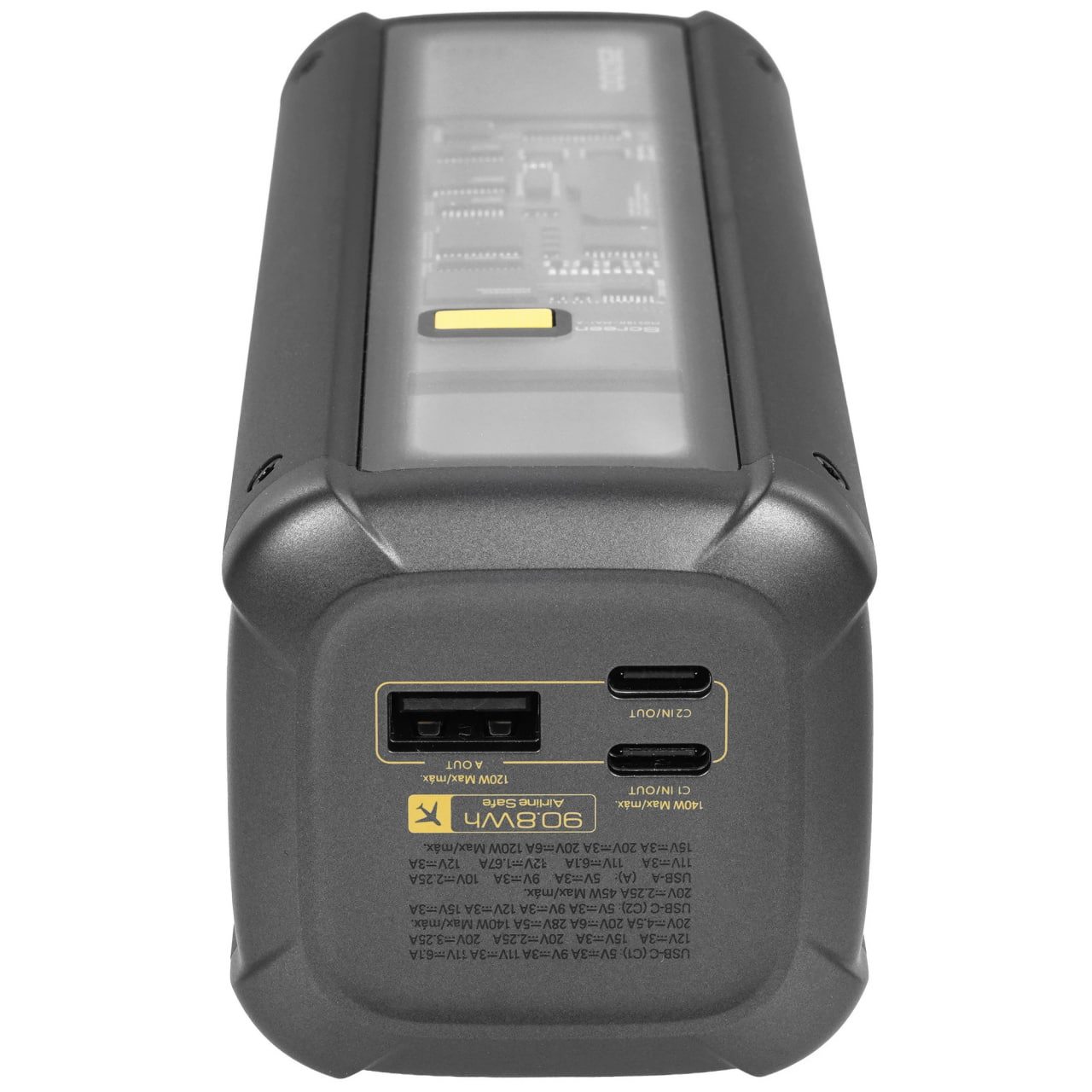 - Емкость 25 000 мА·ч (90.8 Вт·ч): достаточно на несколько циклов зарядки смартфона или для подпитки ноутбука.
